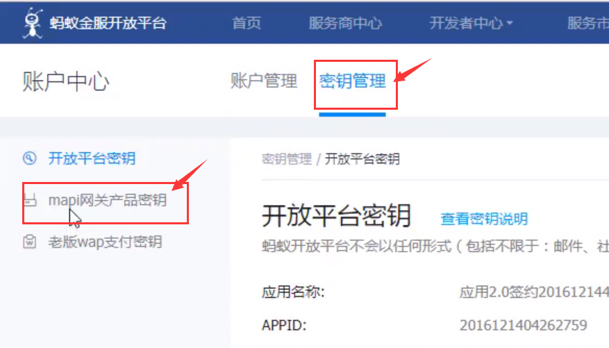获取的途径有很多:例如 点击顶部的开放平台,然后点击账号管理: