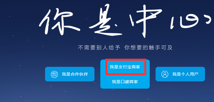 打开并登陆支付宝,鼠标放到我是商家用户按钮上,点击我是支付宝商家